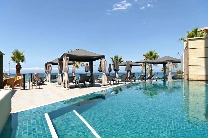Dlhá piesočnatá pláž priamo pri hoteli (oddelená pobrežnou komunikáciou). Ležadlá, slnečníky a plážové osušky (zadarmo). |