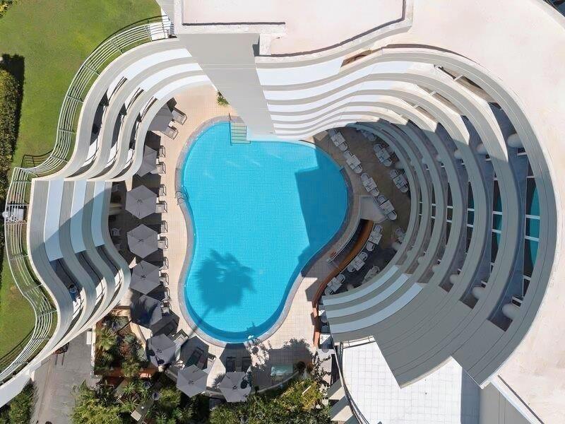 Vstupná hala s recepciou, hlavná reštaurácia, reštaurácia à la carte, bar, TV miestnosť, pasáž s butikmi, konferenčná miestnosť. Vonku 2 bazény s oddelenou časťou pre deti, terasa na slnenie s ležadlami, slnečníkmi a plážovými osuškami (zadarmo). |