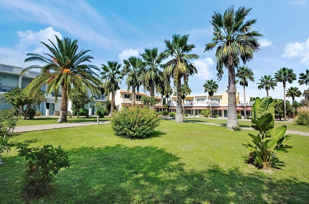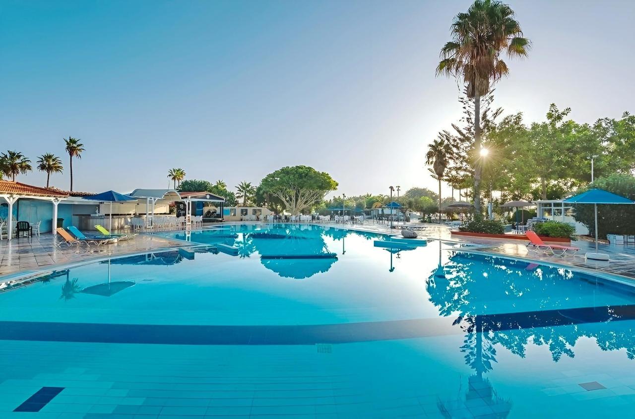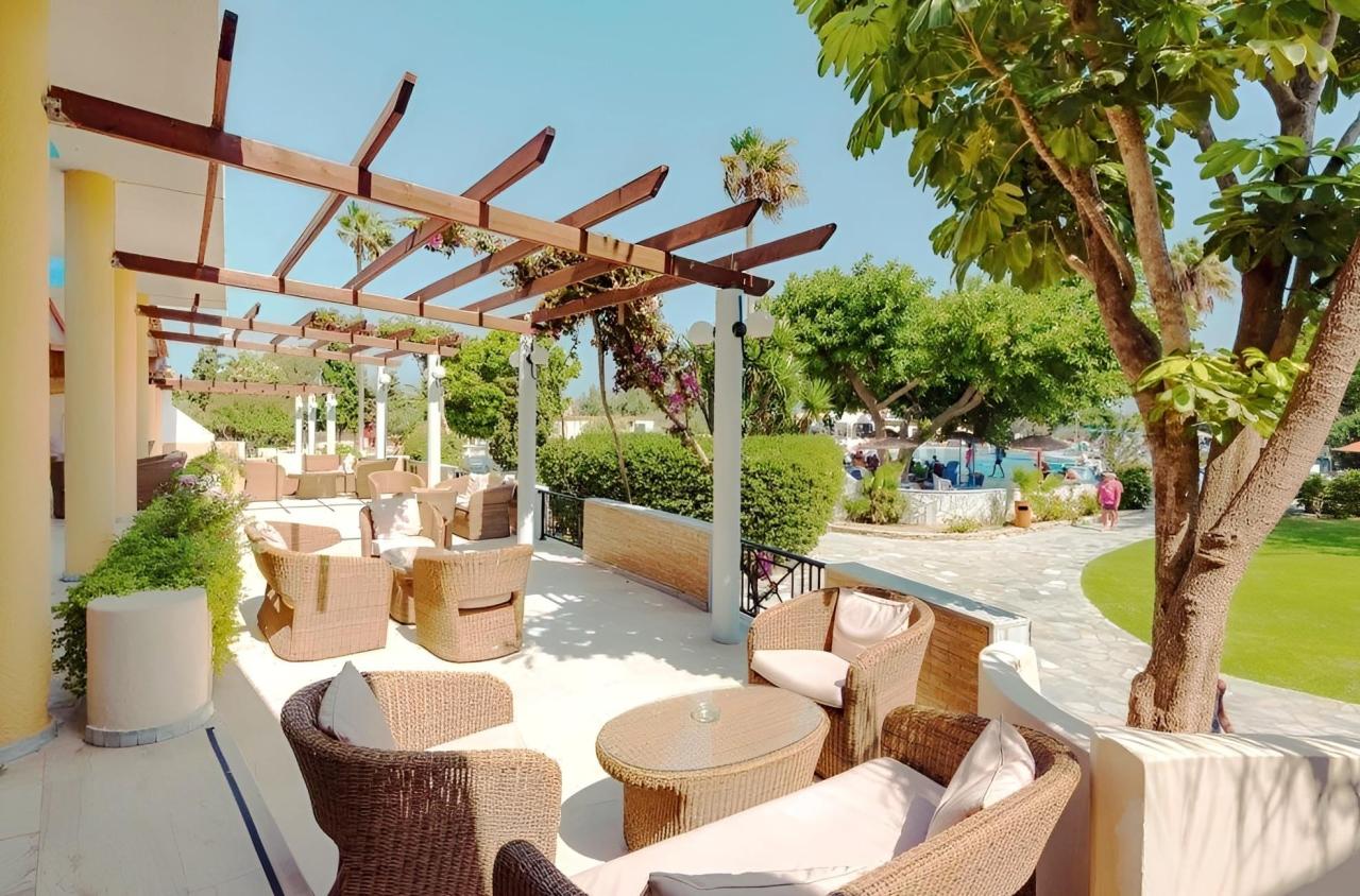 Hlavné a niekoľko vedľajších budov (bungalovov, viladomov) v subtropickej záhrade, vstupná hala s recepciou, výťahy, 2 reštaurácie, bary, taverna, internetový kútik (za poplatok 5 eur/deň). Vonku 2 bazény, terasy na slnenie s lehátkami a slnečníkmi zadarmo. |