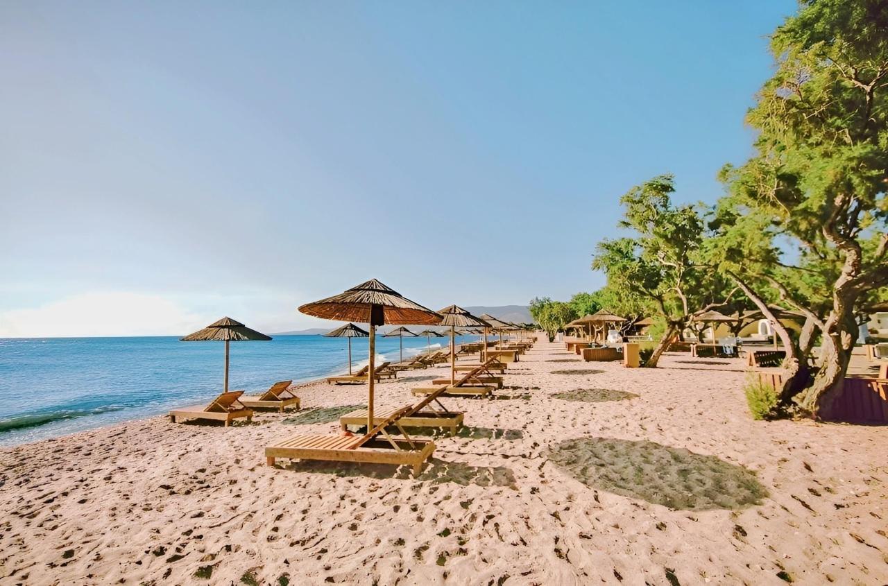 Dlhá piesočnato-okruhliaková pláž priamo pri hoteli, lehátka, slnečníky za poplatok 3 eurá/deň a osušky za poplatok 2 eurá/deň, 10 euro týždeň + 10 euro depozit. |