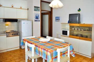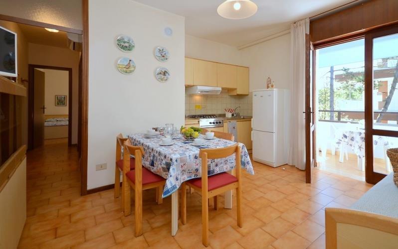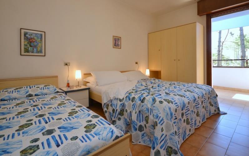 Spiaggia. Pláž: cca 500 m, piesočnatá pláž s pozvoľným vstupom do mora, plážový servis od 4. radu v období 1.5.-30.9. (1 slnečník + 1 lehátko + 1 plážová stolička/apartmán). Centrum: cca 100 m od centra. Ubytovanie: všetky apartmány sú funkčne zariadené, majú trezor, TV, mikrovlnnú rúru, kávovar a klimatizáciu. Typ C pre 5-6 osôb: obývacia izba s gaučom pre 1 osobu a kuchynským kútom, spálňa s 2 lôžkami, spálňa s poschodovou posteľou a samostatným lôžkom, kúpeľňa, balkón. Klimatizácia. Stravovanie: individuálne, možnosť stravovania v okolí. Vybavenie a služby: záhrada. Malé zvieratá povolené na vyžiadanie (za poplatok). Parkovisko: 1 kryté parkovacie miesto/apartmán. Nástupné dni: sobota - príchod 17:00 - 20:00, odchod do 09:00, min. 7 nocí. |