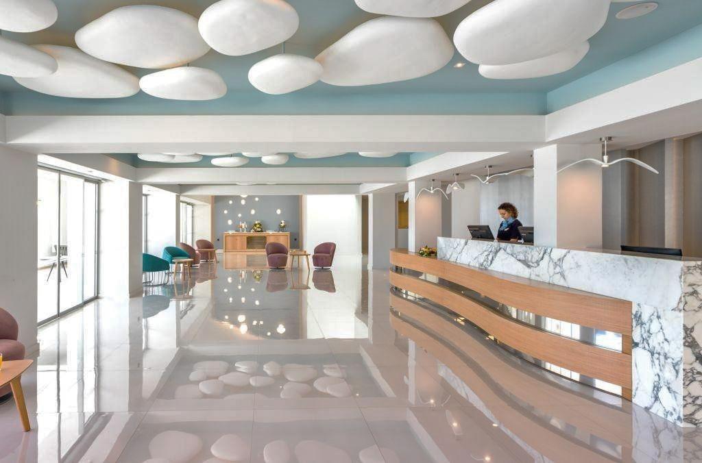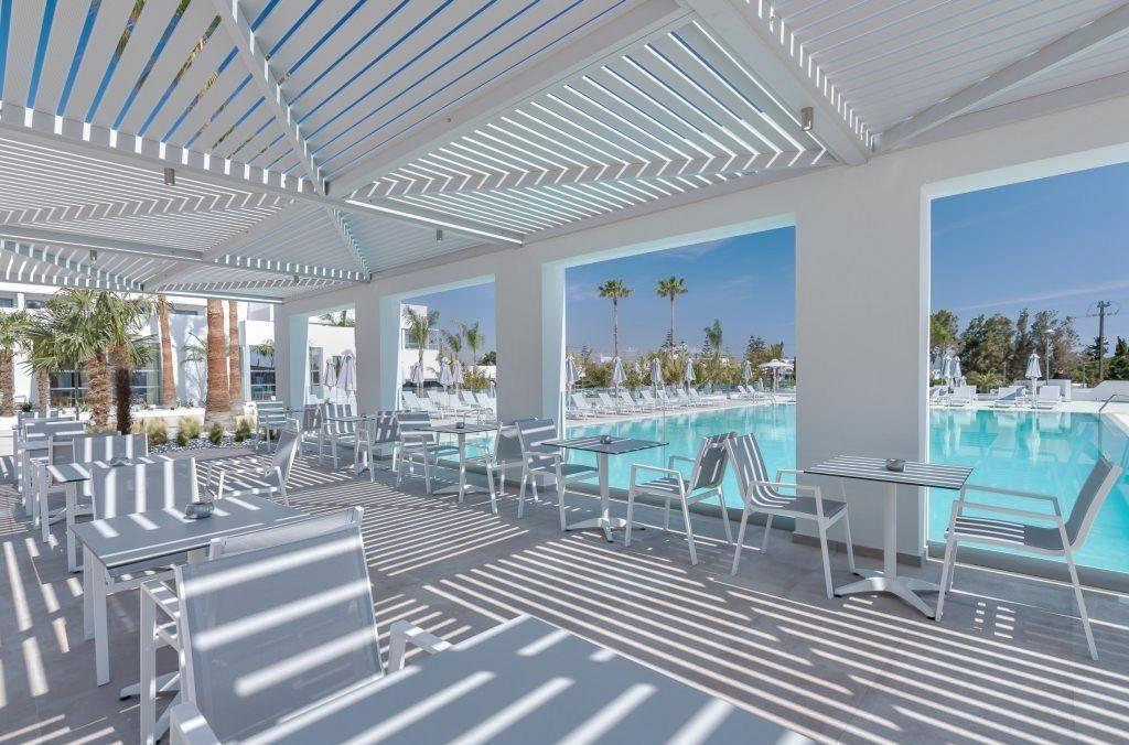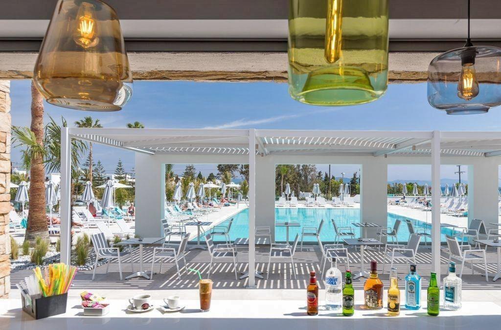 Rekonštruovaný hotel (2019), vstupná hala s recepciou, 3 reštaurácie, bary, 2 vonkajšie bazény so slnečnou terasou v subtropickej záhrade, ležadlá a slnečníky zdarma, krytý bazén, sauna, minimarket, konferenčná miestnosť. |
