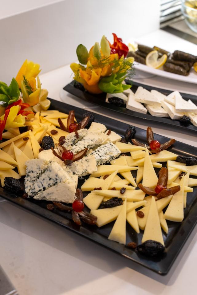 All inclusive skoré raňajky (05:00-07:30) na požiadanie vopred raňajky (07:30-10:30) ,obedy (12:30-14:30) a večere (18:30- 21:30) formou budetu Lobby bar: (18:00-23:00) vybrané alkoholické a nealkoholické nápoje miestnej výroby Snack bar: (10:00-11:00) - neskoré raňajky, ľahké snacky, miestne víno, pivo, nealkoholické nápoje domácej výroby (11:00-17:00) - dopoludňajšie a popoludňajšie teplé i studené občerstvenie, káva, čaj (17:00 -18:00) - káva, čaj (10:00 -23:00) - vybrané alkoholické a nealkoholické nápoje miestnej výroby, džúsy, pivo, víno |