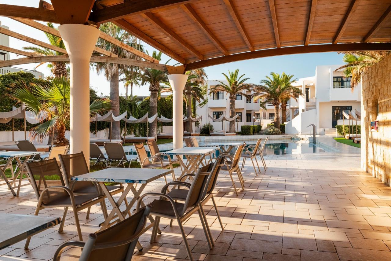 hotelový komplex so 108 izbami v ôsmich 2 poschodových budovách obklopených krásnou záhradou ponúka vstupnú halu s recepciou, reštauráciu, Lobby bar, Snack bar, bazén so sladkou vodou, ležadlá a slnečníky pri bazéne a na pláži zadarmo. Hotel pre svojich hostí organizuje grécke večery so živou hudbou a tancom. Hotel poskytuje plážové osušky. |