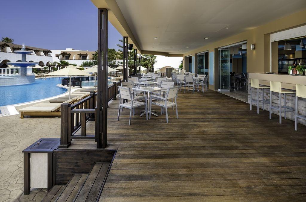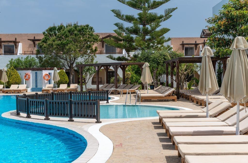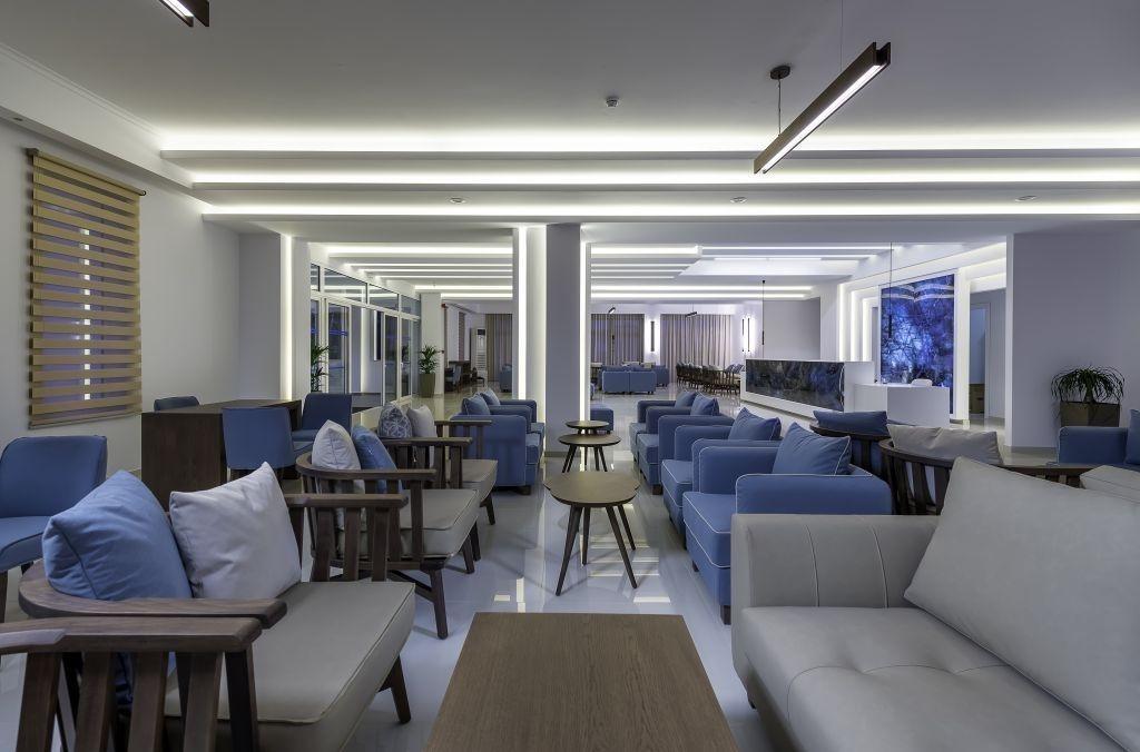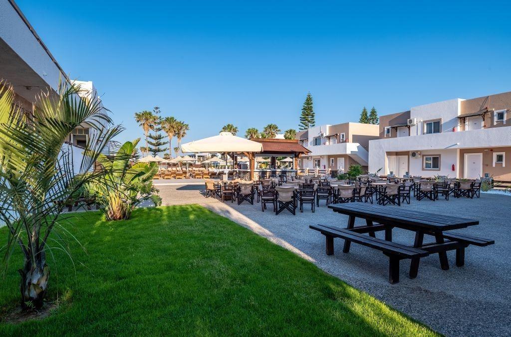 Hlavná budova a priľahlé dvojposchodové budovy, vstupná hala s recepciou, TV miestnosť, bar, reštaurácia s terasou. Vonku v záhrade 2 bazény, bazén pre deti, terasa na slnenie s lehátkami a slnečníkmi zdarma, bar pri bazéne. |