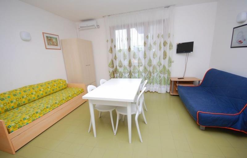 Typ C pre 4-6 osôb: obývacia miestnosť s rozkladacím gaučom pre 2 osoby, spálňa s manželskou posteľou, spálňa s poschodovou posteľou, kuchynský kút, kúpeľňa, balkón. Stravovanie: individuálne, veľa stravovacích možností v blízkom okolí. Vybavenie a služby: Bazén vhodný pre deti aj dospelých, záhrada, recepcia, výťah. Zvieratá nie sú povolené. Parkovisko: do vyčerpania miest. Nástupné dni: sobota - príchod 17:00 - 20:00, odchod do 09:00. |