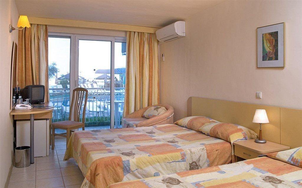 Dvoulůžkové pokoje s možností až 2 přistýlek pro děti mají vlastní příslušenství (koupelna, WC), klimatizace, SAT/TV, chladnička a balkon s výhledem na moře, bazén nebo do zeleně. |