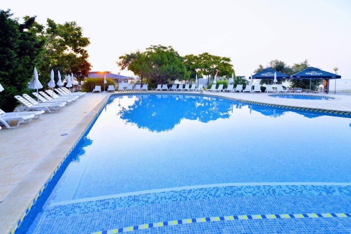 Vstupní hala, recepce, směnárna, TV koutek, à la carte restaurace, lobby bar, WiFi ve společných prostorách zdarma; trezory na recepci (cca 40 BGN/týden). Terasa, bazén s dětskou částí; lehátka a slunečníky zdarma (1 slunečník a 2 lehátka/pokoj), osušky za poplatek (cca 3 BGN + vratný depozit cca 10 EUR). |