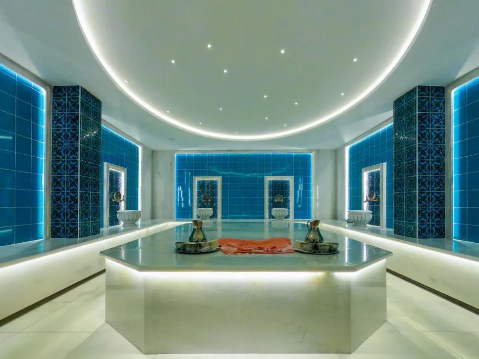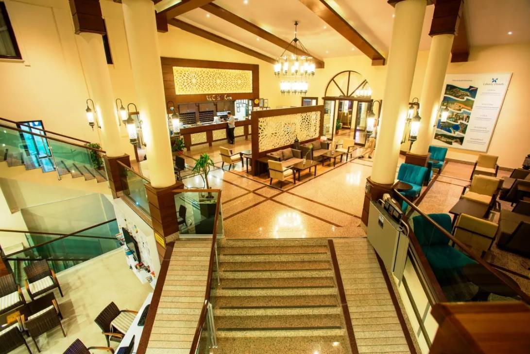 203 izieb v niekoľkých budovách v areáli hotela, vstupná hala s recepciou, hlavná reštaurácia, 2 reštaurácie à la carte (rezervácia nutná, za poplatok, medzinárodná, stredomorská), snack bary, bary, SPA centrum, požičovňa áut, lekár, zmenáreň, práčovňa, knižnica, 2 bazény, detský bazén, slnečná terasa, ležadlá, slnečníky a osušky zdarma. |
