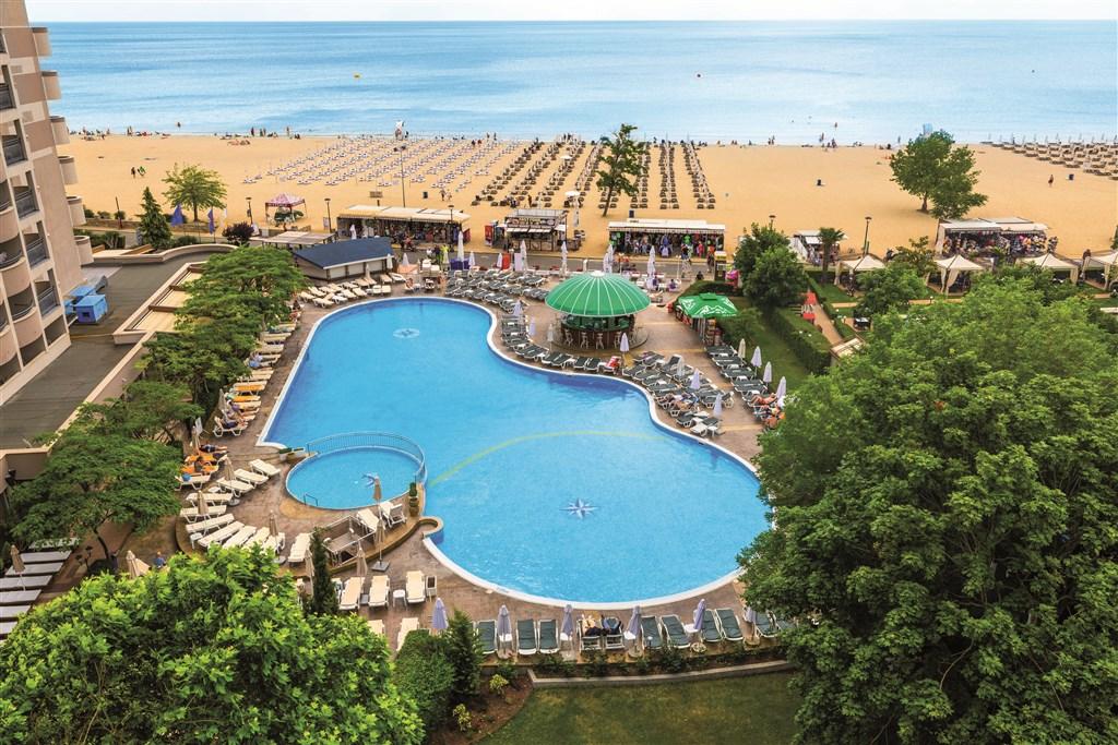 vstupná hala s recepciou • 4 výťahy, z toho 1 panoramatický • trezor (za poplatok) • zmenáreň • WiFi pripojenie zdarma • priestranná reštaurácia s terasou • lobby bar • bar pri bazéne • vonkajší bazén s detskou časťou • ležadlá a slnečníky pri bazéne zdarma • detské ihrisko • biliard • malé zvieratá do 5 kg povolené za poplatok cca 10 Leva/deň (platba na mieste)