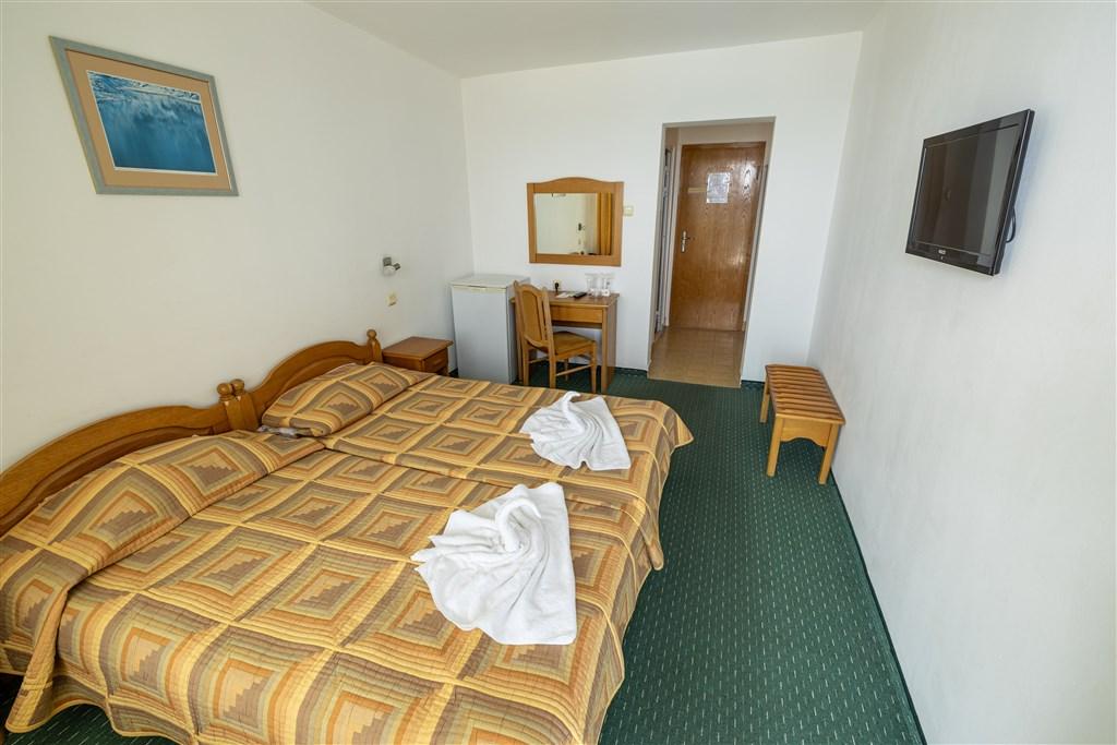 v izbách a apartmánoch • IZBY - 2-lôžkové izby štandard a superior s možnosťou prístelky • izby superior majú väčšiu rozlohu • výhľad na more za príplatok • APARTMÁNY - Štandard pre 2-4 osoby - 2 spálne, 1 kúpeľňa (max. 2 dosp.os. + 2 deti) • Superior pre 2-5 osôb - väčšia rozloha, 2 spálne, 2 kúpeľne (max. 2 dosp.os. + 3 deti) • klimatizácia • minichladnička • SAT/TV • WiFi zdarma • balkón • detská postieľka na vyžiadanie zdarma (obmedzený počet)