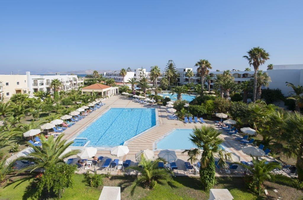 Na okraji strediska Tigaki. V okolí hotela mnoho reštaurácií, taverien, barov a obchodov. Vzdialenosť od mesta Kos cca 12 km (spojenie linkovým autobusom). Letisko Kos je vzdialené 15 km od hotela. |